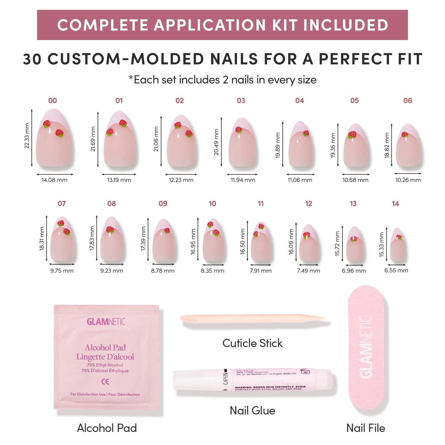 Glamnetic Press On Nails – Jam Drizzle | Short Almond Fake Nails in Deep Purple with High-Shine Glazed Finish, Salon Quality | 15 Sizes – 30 Nail Kit with Glue(8 – Strawberry Bits)