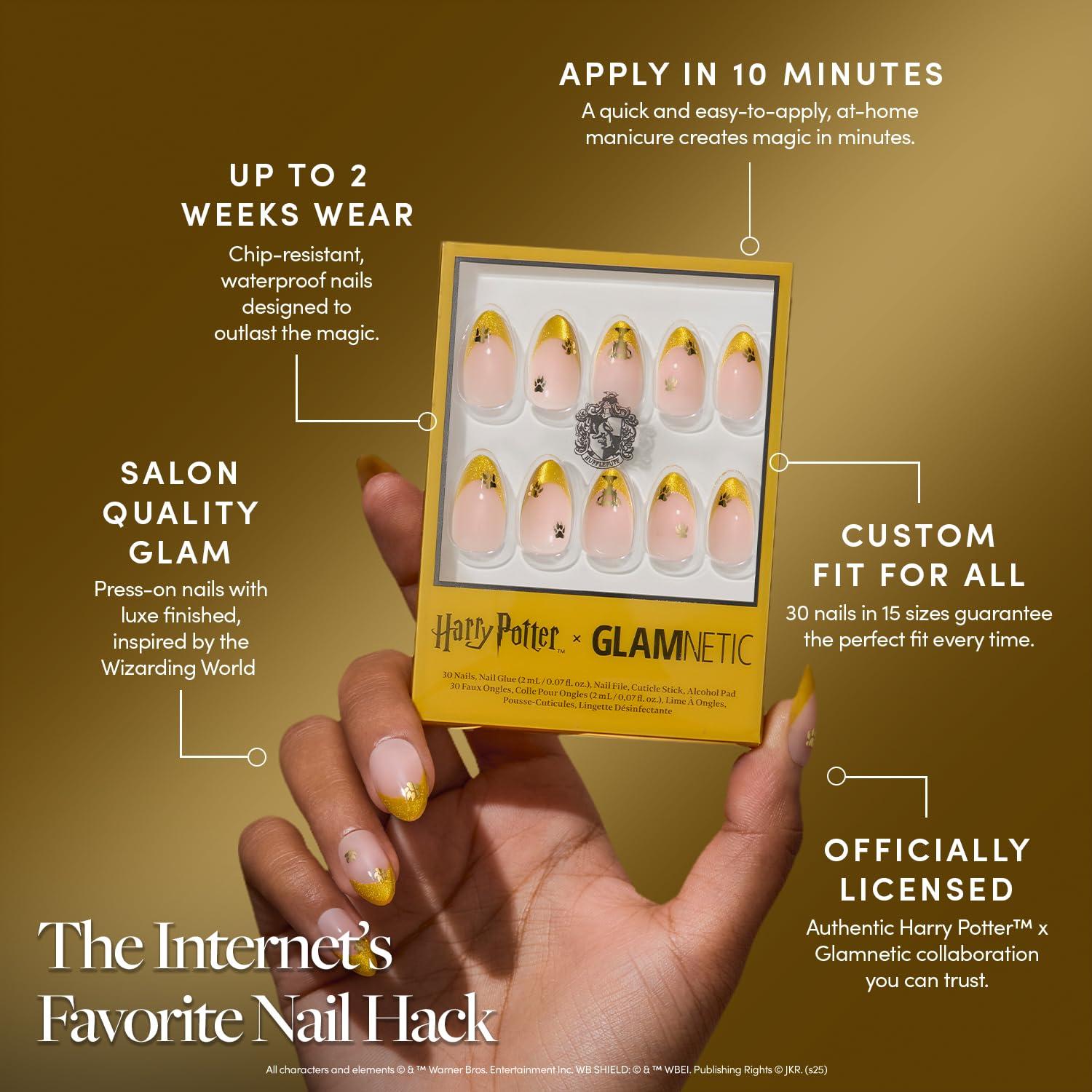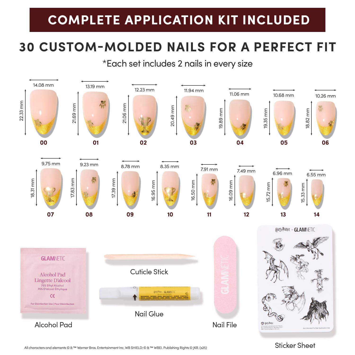 Easy 10-Minute Application: Kit includes nail glue, cuticle stick, alcohol pad, nail file, plus a ‘magical creatures’ sticker sheet exclusive to the Harry Potter x Glamnetic collection.